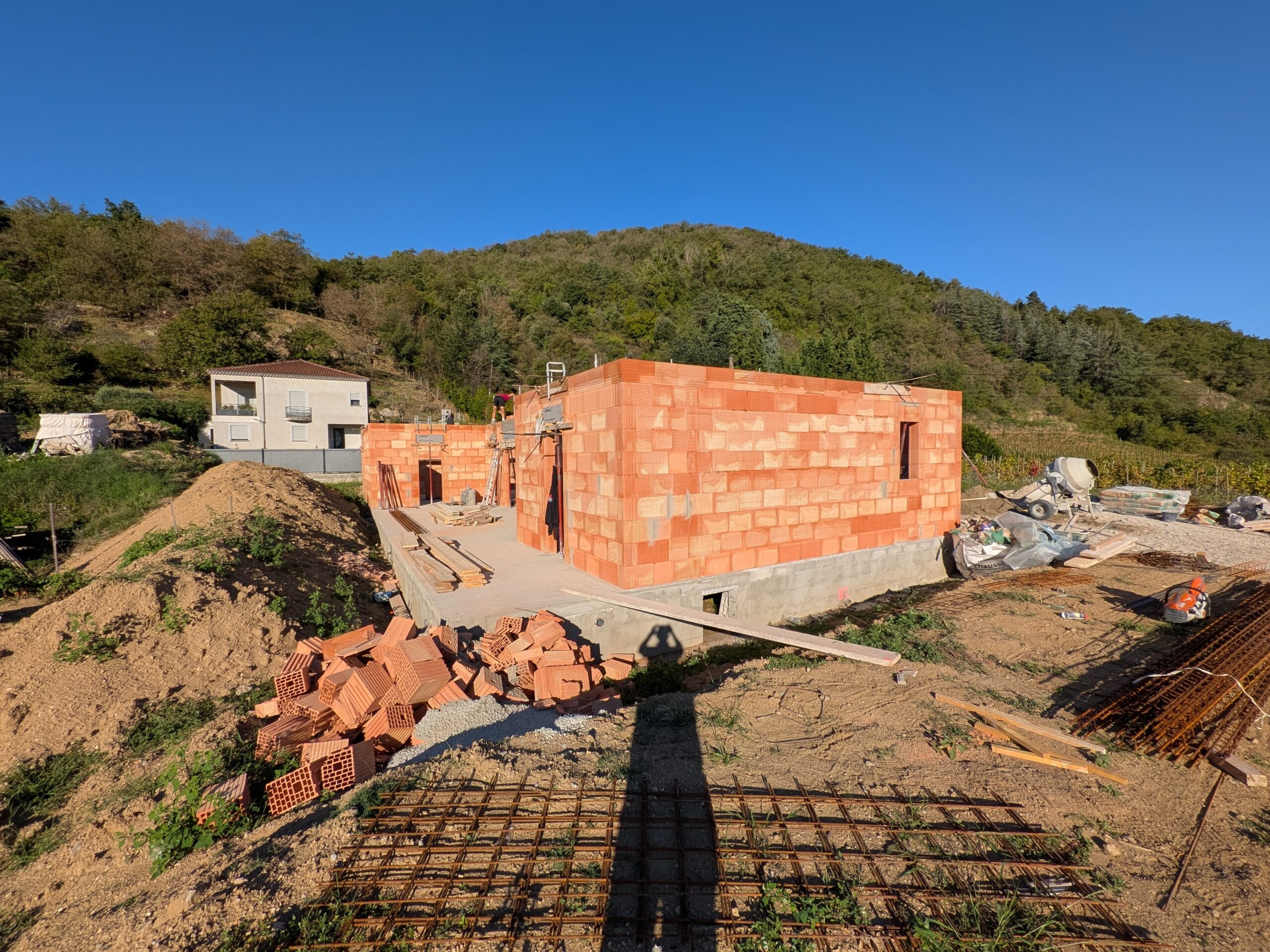 Construction d’une maison individuelle avec 4 chambres, terrasse, terrain de basket et garage à Vion en Ardèche